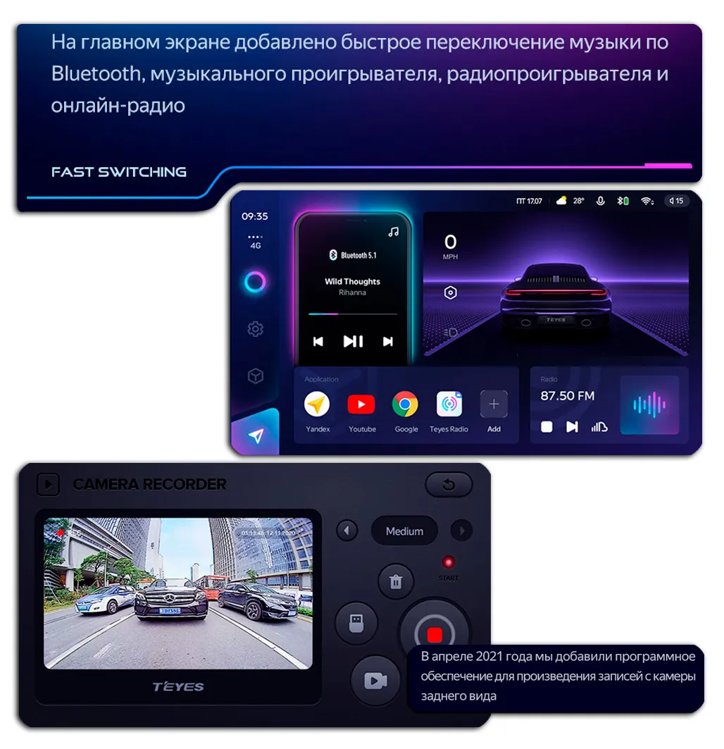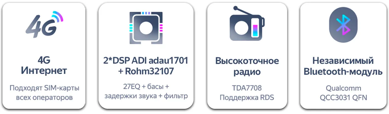 • Bluetooth подключения: ODB II / Звонки / Музыка