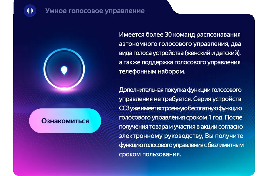 • Управление голосом: Подключено пожизнено