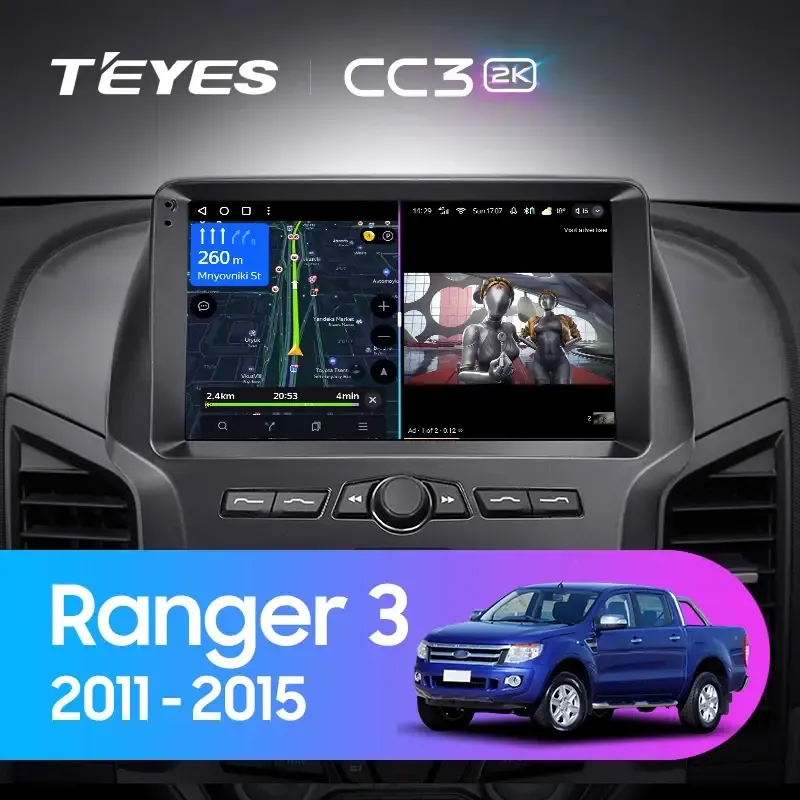 Комплект магнитолы TEYES CC3 2K 9.5" для Ford Ranger 2011-2015