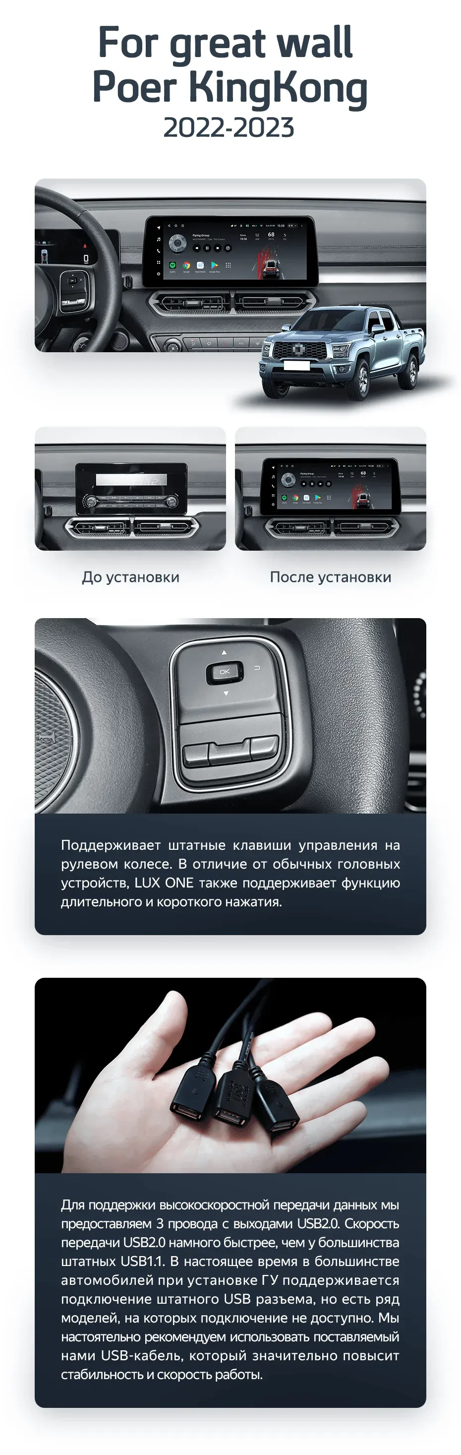Мультимедиа TEYES LuxOne 6/128 для GREAT WALL Poer KingKong 2022-2023