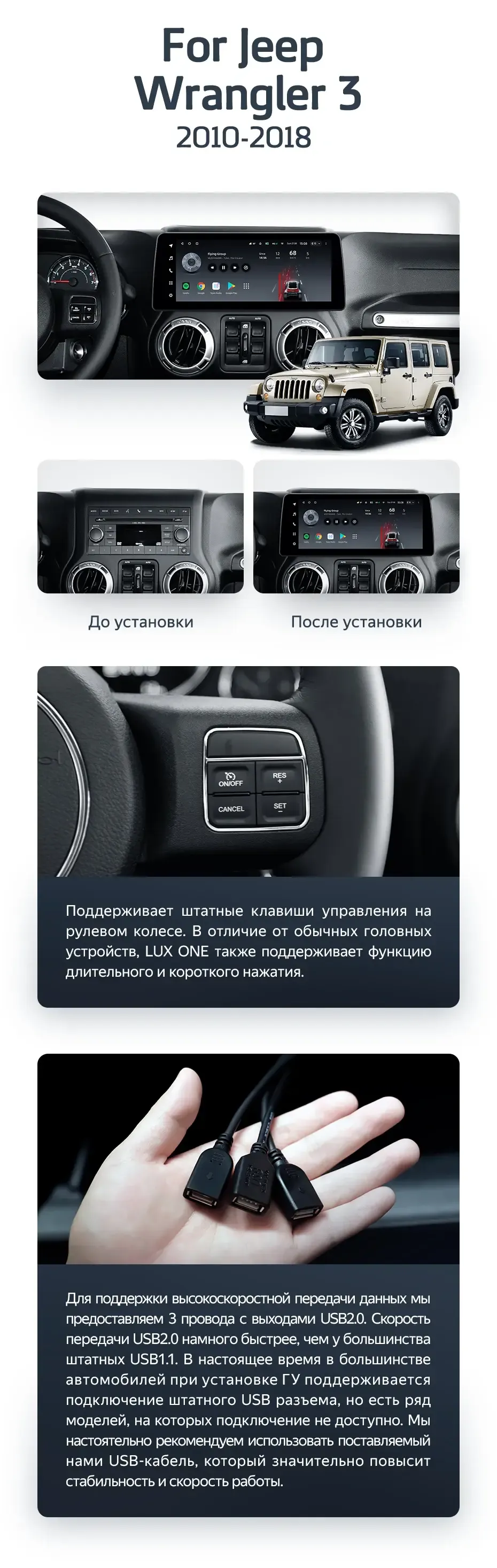 Мультимедиа TEYES LuxOne 6/128 для Jeep Wrangler 3 JK 2010-2018