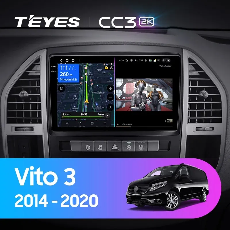 Комплект магнитолы TEYES CC3 2K 10.36" для Mercedes-Benz Vito W447 2014-2023
